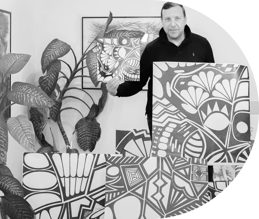 MiroslavNikolov or Miro for short, is Nikolay’s son who started his journey in art at an early age when he enrolled at Varna Art School. After his graduation he continued to develop his distinct art style in ink drawing that has resulted in the creation of many dynamic art compositions. Miro is keen to express his creative ideas on the go, so that the initially impulsive sketches on small pieces of paper can then be developed into unique compositions of lines and, geometric shapes in ink or paint splashes.