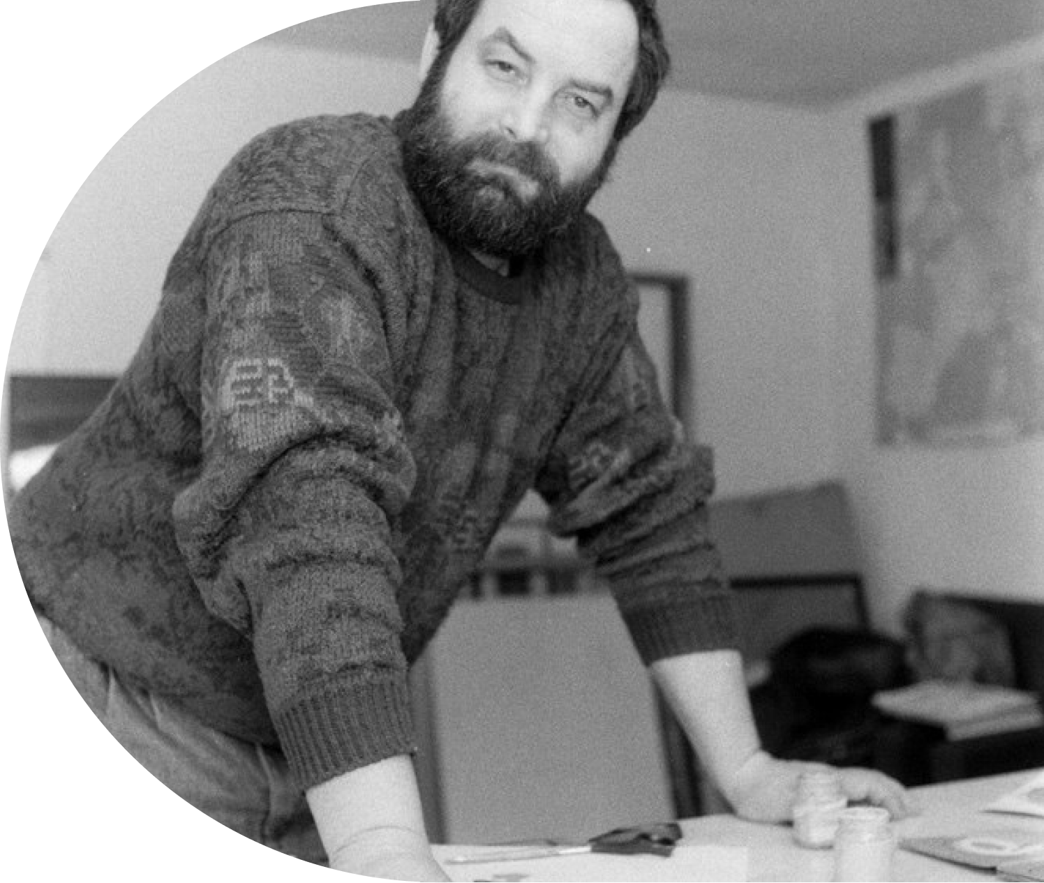 Nikolay Nikolov belongs to a new distinct generation of artists who emerged on the Bulgarian art scene in the late 1970s and the early 1980s. Those artists brought a different and more modern way of expression that defied the aesthetic norms of the existing totalitarian culture at the time. Having completed his higher education at the Veliko Turnovo University in Graphic Art, Nikolov was fortunate to join the best existing artistic community of the Atelier Centre Vulcan (meaning the God of fire and craftsmanship in ancient Roman mythology) located in the former factory Vulcan in the beautiful seaside city of Varna. In time those artists became well known for their innovative approach to art, daring ideas, and exceptional professionalism. In the 1980s, Nikolay Nikolov creates mainly black and white etchings that depict compositions inhabited by human figures, those of animals as well as of symbolic objects. The imagery of the compositions is further enhanced by swirling movement and plastic contrasts that help to create deeply expressive and dominant atmospheric presence. Nikolov’s works exemplify the artist’s possession of impeccable draftsmanship, striking linear language and innate expression of rich metamorphoses, achieved through the mediums of the art of graphics. Towards the 1990s, Nikolov’s artistic style undergoes a visible change. Whilst his graphics continue to dwell on human, social and natural relations, the context becomes more universal and that he expresses in a purely abstract-geometric manner.